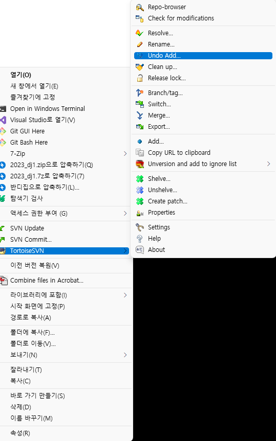 | Tortoise SVN add 취소 (undo add, Revert) (0) | 2023.07.12 |